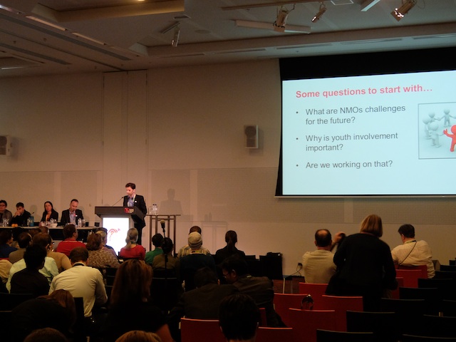 総会は大会と同じ会場で朝8時半から夕方4時まで行われます。大変な長丁場です。世界各国のNMO(National Menber Organzation、国ごとの代表団体)が一票を行使します。