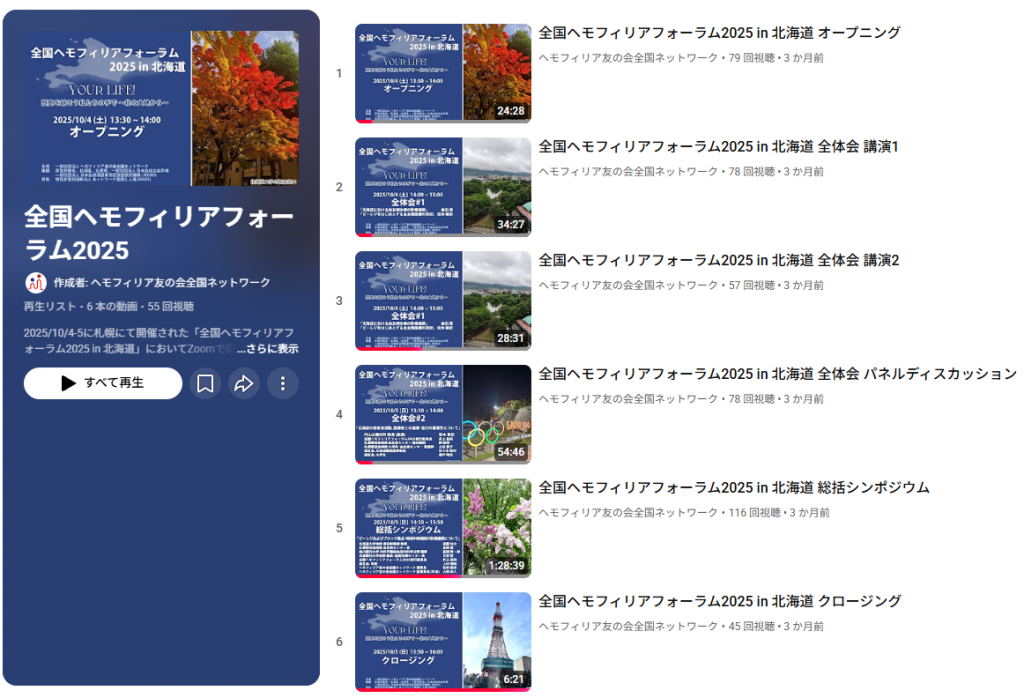 全国ヘモフィリアフォーラム2025 YouTube再生リスト